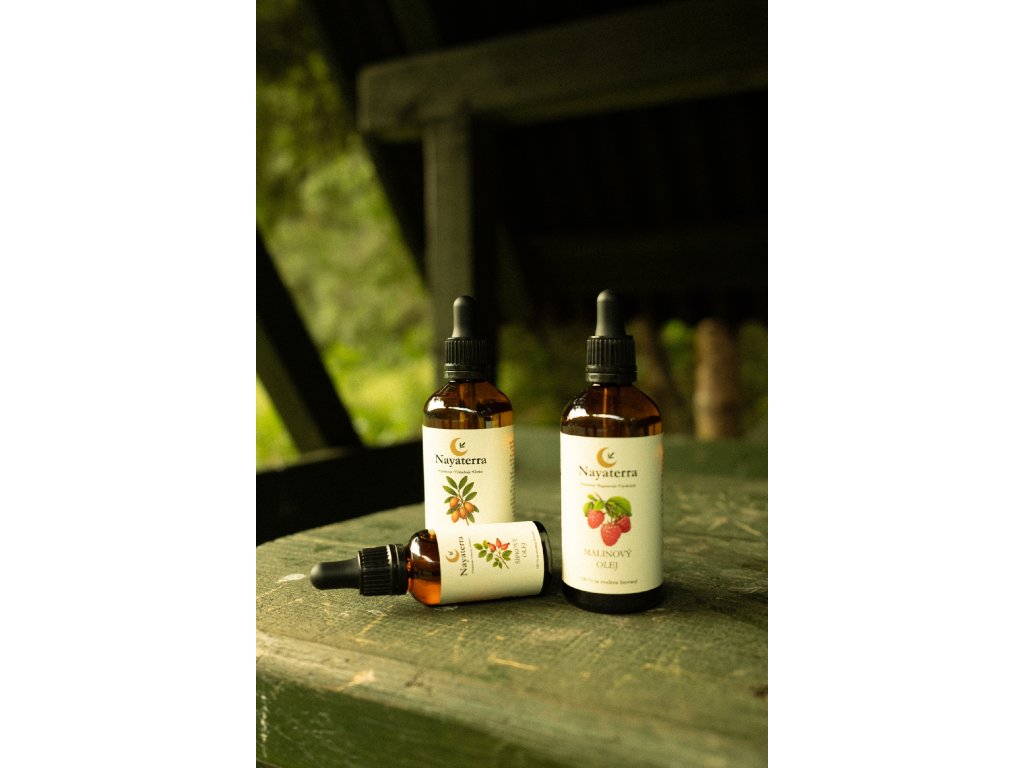 Set troch 100 % prírodných bio olejov – jojobového 100ml , malinového 100ml a šípkového 30ml – pre dokonale hydratovanú, vyživenú a žiarivú pleť.